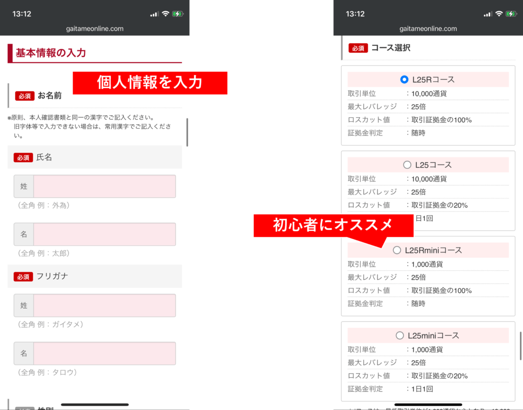 初心者の人におすすめしたいのが「L25Rminiコース」です。このコースはシンプルで、取引証拠金が100%を下回らないように気を付けるだけで大丈夫です。また、取引単位も1,000通貨なので少額から始めることができるため、ひとまずは「L25Rminiコース」を選択することをおすすめします。また、コースは口座開設後に追加できるので、他のコースを試すことも可能です。