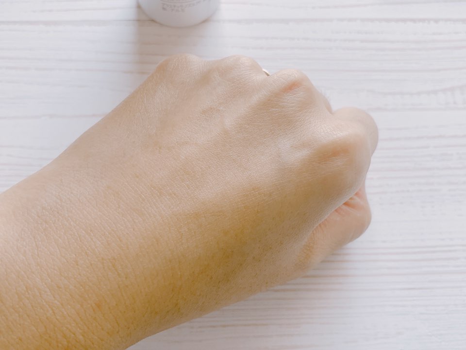 手の甲に中身を出してみました。シュワっとしていて、肌の上にのせると少しだけ液体状に変化します。