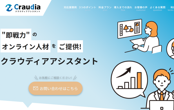 クラウディアアシスタントは、事務・経理・営業支援などの業務を、オンラインで代行する専任制アシスタントサービスです。採用テストを通過した即戦力人材が対応し、1か月単位で契約可能。土日・深夜も追加料金なしで依頼でき、業務の効率化と人的コストの最適化を同時に実現します。