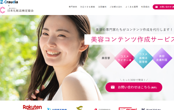 美容家・コスメライター・薬機法管理者など100名超の美容専門家が参画する美容コンテンツ制作サービス。記事企画から取材・執筆、薬機法チェック、美容皮膚科医等の監修まで対応。Web記事・LP・SNS投稿やSEOコンテンツ制作、効果測定と改善提案まで伴走。