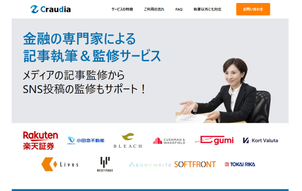 金融業界出身者がディレクションから執筆まで担い、公認会計士・税理士・CFP®・証券アナリストなど現役の専門家が監修するコンテンツ制作サービスです。資産運用・投資信託・株式・保険・相続・法人財務まで幅広く対応し、専門性と正確性を重視した信頼性の高いコンテンツを提供します。