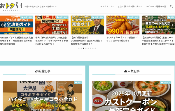 『○○って最近良く聞くけど、いまいち安くなるのかがわからない』『こういう支払い方をすれば節約できるって聞いたけど、実際どうなの?』といった節約に関する疑問を解決し、読者がよりお得に、楽しく暮らせる情報を発信