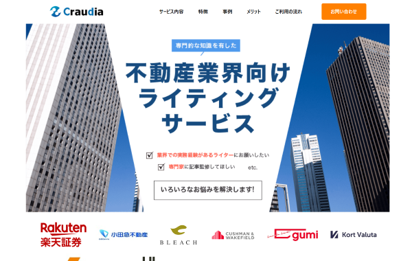 不動産業界経験者がディレクションから執筆まで担い、建築士・宅建士・FPなど現役専門家が監修するコンテンツ制作サービス。物件紹介・市況解説・投資指南・賃貸管理・法人売買まで幅広く対応し、専門性と信頼性を意識したコンテンツ制作を行います。
